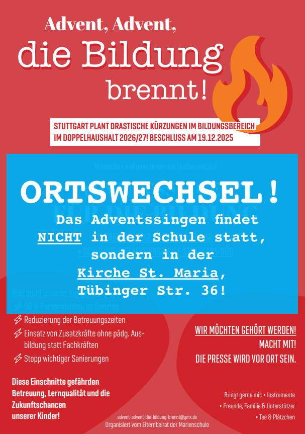 Der Vorstand des GEB Stuttgart unterstützt die Aktion des Elternbeirats der Marienschule.